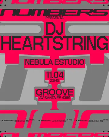 Numbers pres. DJ HEARTHSTRING takes place at Groove in Buenos Aires, Unknown on April 11, 2026. Featuring DJ Heartstring. Trance.