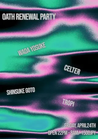 OATH RENEWAL OPEN PARTY takes place at Oath in Tokyo, Japan on April 24, 2026. Featuring Wada Yosuke, Celter, Shinsuke Goto. Techno and House sounds all night.