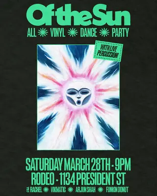 Arjun Shah and funkin donut headline Of the Sun: All-Vinyl Dance Party at Rodeo, New York, United States on March 28, 2026. Featuring Arjun Shah, funkin donut, ራሄል (Rachel), vikmatic. Afrobeat and Kwaito sounds all night.