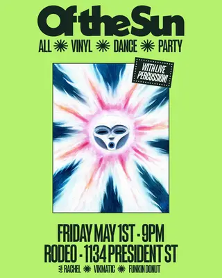 Of the Sun: All-Vinyl Dance Party takes place at Rodeo in New York, United States on May 1, 2026. Featuring funkin donut, vikmatic, ራሄል (Rachel). Afrobeat and Disco sounds all night.