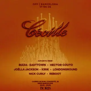 Off Barcelona - Cécille takes place at BORIS CLUB in Barcelona, Spain on June 17, 2026. Featuring BizZa, Nick Curly, Easttown, Reboot and 3 more. House sounds all night.