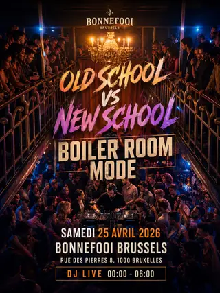 Old school VS New school - Boiler room event on April 25, 2026 at Bonnefooi, Brussels features electronic music performances electro DJ sets.