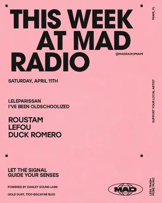OLDSCHOOLIZED: Roustam, LEFOU, DUCK TOMERO takes place at Mad Radio Miami in Miami, United States on April 11, 2026. Featuring Roustam. House sounds all night.