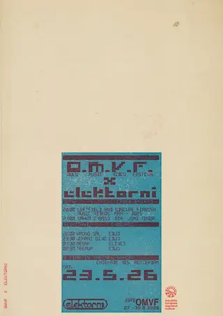 OMVF x Elektorni takes place at Time is the new space in Rotterdam, Netherlands on May 23, 2026. Featuring Wrong Sal, Mesak, Juhani Oivo, teemup. Techno and Electro sounds all night.