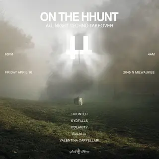 ON THE HHUNT takes place at Smoke & Mirrors in Chicago, United States on April 10, 2026. Featuring hhunter, Eulalia. Techno sounds all night.
