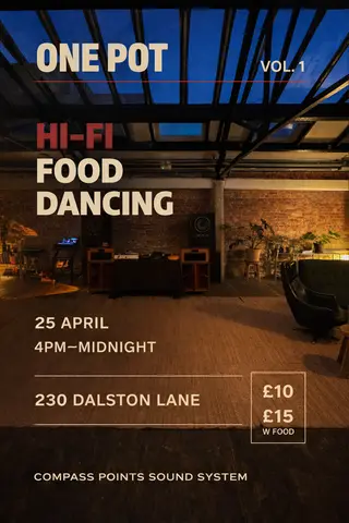 One Pot on April 25, 2026 at TBA - 230 Dalston Lane, London features electronic music performances house DJ sets.