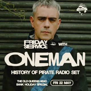 Oneman: History of Pirate Radio (DJ Set) [BANK HOLIDAY SPECIAL] on May 22, 2026 at The Old Queens Head, London features Oneman performing garage DJ sets.