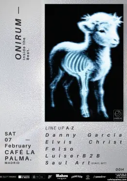 Onirum vuelve a Café La Palma con una noche dedicada al groove, al ritmo y al movimiento. Una experiencia donde el house, el techno y sus vertientes más hipnóticas y dinámicas se entrelazan en narrativas sonoras diseñadas para el baile. Un espacio para quienes buscan perderse en el ritmo, el movimiento y la exploración sonora. Cinco propuestas con identidades propias convergen en un recorrido nocturno marcado por pulsos envolventes, energía constante y una visión compartida: la música electrónica como lenguaje de expresión física y sensorial. Danny García y su sonido se mueven entre el House, Minimal, Electro, Techno y Break Beat, con sets energéticos y una fuerte identidad de pista que invitan al movimiento y a explorar cada pulso de la música. Elvis Christ explora las vertientes más puristas del techno, sumergiéndose en el Hypnotic & Raw, Detroit Techno y Hard Groove, ofreciendo un viaje sonoro hipnótico definido por atmósferas profundas. Felso se caracteriza por su estilo que combina indie dance, dark disco, melodic techno/house y progressive house, con un enfoque rítmico donde el groove es el centro de dinámicos y envolventes sets. Luiser experimenta con la fusión entre House, Electro y Break, con una identidad marcada por el equilibrio entre potencia, groove y una cuidada selección musical. Saulart invita a una propuesta centrada en la exploración de géneros como Electro, Break, New Wave y House. Su estilo se caracteriza por una selección cuidada y sets dinámicos que combinan energía, ritmo y coherencia musical.