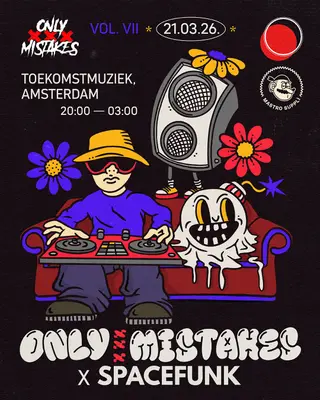 ONLY MISTAKES X SPACEFUNK takes place at Toekomstmuziek in Amsterdam, Netherlands on March 21, 2026. Featuring Kikko, Rouge (IT). Tech House sounds all night.