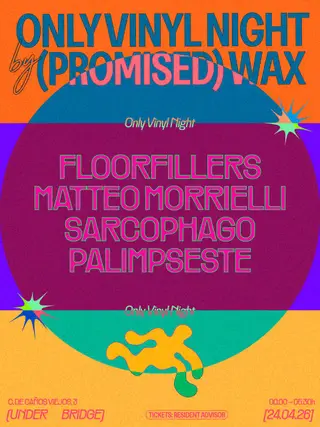 ONLY VINYL NIGHT by PROMISED WAX takes place at Under Bridge Madrid in Madrid, Spain on April 24, 2026. Featuring Floorfillers (1), Matteo Morrielli, Sarcophago, Palimpseste.