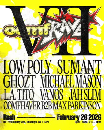 oomfRAVE 7 takes place at Rash in New York City, Unknown on Saturday, February 28, 2026. Featuring Ghozt, oomfhaver, Max Parkinson. Bass, Electro.