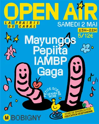 OPEN AIR: IAMBP, PEPIITA, GAGA, MAYUNGOS takes place at La Prairie du Canal in Paris, France on May 2, 2026. Featuring IAMBP, PEPIITA. Tech House and Electro sounds all night.