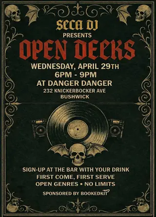 Set at Danger Danger, Open Decks hosted by SECA 2026 brings together artists and fans in New York City on Wednesday, April 29, 2026. This event brings together artists and fans who share a passion for dance music culture and electronic sounds. Danger Danger has hosted electronic events in New York City as part of the area's regular club programming. It draws fans seeking authentic electronic music in New York City. Designed for a discerning audience, Danger Danger's programming draws fans of electronic music across New York City. The production is designed to showcase the depth and diversity of contemporary electronic music.