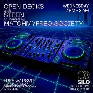 Open Decks with STEEN and MatchMyFreq Society takes place at SILO in New York, United States on June 3, 2026. Featuring STEEN. Techno and House sounds all night.