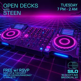 Open Decks with STEEN takes place at SILO in New York City, United States on May 12, 2026. Featuring STEEN. Techno and House sounds all night.