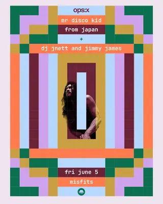 ops:x with mr. disco kid takes place at Misfits in Melbourne, Australia on June 5, 2026. Featuring DJ JNETT. Disco and Jazz sounds all night.