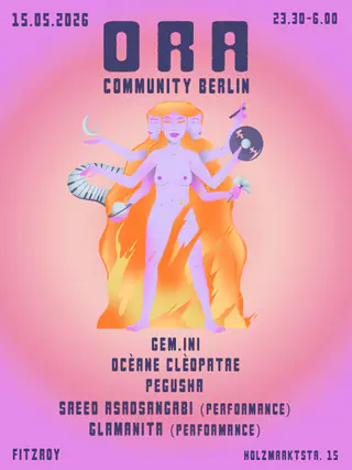 Ora community Berlin - debut party takes place at Fitzroy in Berlin, Germany on May 15, 2026. Featuring Océane Cléopatre. House and Experimental sounds all night.