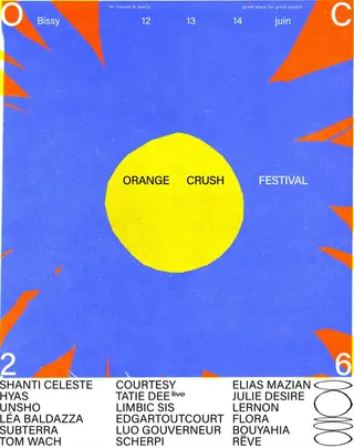 Orange Crush Festival 2026 takes place at a venue to be announced at Ferme de Bissy, Rue de Bissy, Bonnelles, France, on June 12, 2026. This festival showcases the electro genre with a lineup of notable artists. Shanti Celeste, an electro producer known for her energetic sets, hails from Chile and has gained recognition for her releases on labels like NERVES. Hyas, a Berlin-based artist, is recognized for blending techno and electro influences in her performances. Subterra, known for his deep and immersive soundscapes, contributes to the lineup alongside Courtesy, a Danish DJ known for her eclectic mixes that span various electronic subgenres. Additional acts include Tatie Dee, an artist noted for her unique approach to electronic music, limbic sis, and Elias Mazian, who has made a name for himself in the Amsterdam scene with his groovy productions. Julie Desire rounds out the lineup, bringing her distinct sound to the festival.