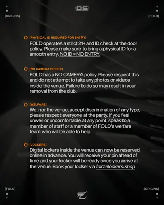 Origins: Fadi Mohem, Philippa Pacho & Rene Wise on April 2, 2026 at FOLD, London features Fadi Mohem, Philippa Pacho and Rene Wise performing techno DJ sets.