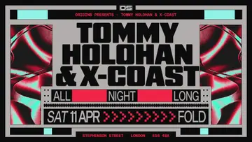 Origins: Tommy Holohan & X-Coast (All Night Long) takes place at FOLD in London, United Kingdom on Saturday, April 11, 2026. Featuring Tommy Holohan, X-Coast. Techno.