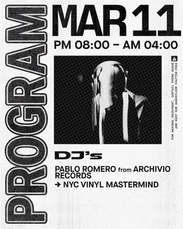 Outer Heaven presents: Pablo Romero 2026 takes place at the renowned Outer Heaven in New York City, Unknown on Wednesday, March 11, 2026, featuring Pablo Romero. This event brings together artists and fans who share a passion for dance music culture and House sounds.