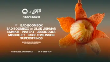 Overbruggen x Hot Meal - King\s Night 2026 takes place at the renowned Warehouse Elementenstraat in Amsterdam, Netherlands on Sunday, April 26, 2026, featuring Bad Boombox, Ollie Lishman, Emma B and 3 more artists. This event brings together artists and fans who share a passion for dance music culture and electronic sounds.
