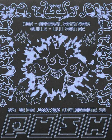 P U S H takes place at Chausseestrasse 131 in Berlin, Germany on Saturday, February 28, 2026. Featuring general whatever, Lilli Winter, Guille (2), CBR (Berlin). Techno, House.