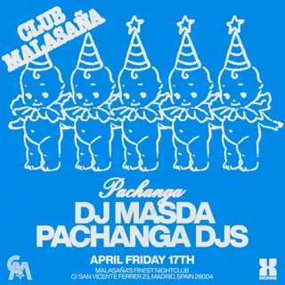 Pachanga feat. DJ Masda takes place at Club Malasaña in Madrid, Spain, on April 17, 2026. The event showcases a blend of house and electronica genres. Pachanga is known for its distinct sound that combines elements of house and Latin rhythms, often drawing from its roots in Spain. DJ Masda, hailing from Japan, is recognized for his deep house and minimal techno style, often associated with his work in the Tokyo club scene.