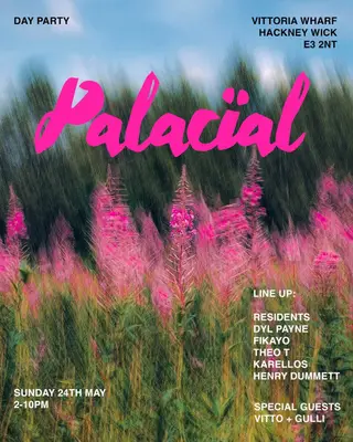 Palacïal presents: Hackney Wick Day Party takes place at Vittoria Wharf Studio in London, United Kingdom on May 24, 2026. Featuring Dyl Payne, Fikayo, Theo T, Karellos and 1 more. Techno and Deep House sounds all night.