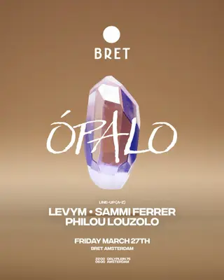 Ópalo BRET with Philou Louzolo takes place at BRET in Amsterdam, Netherlands on March 27, 2026. Featuring LevyM, Philou Louzolo. Afro House and Afro Tech sounds all night.