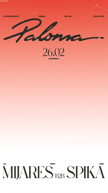 Paloma presents: SPIKA b2b Mijares takes place at Paloma in London, United Kingdom on Thursday, February 26, 2026. Featuring SPIKA.