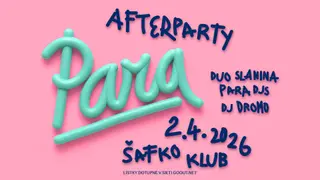 PARA - AFTERPARTY on April 2, 2026 at Šafko Klub, Bratislava features electronic music performances pop DJ sets.