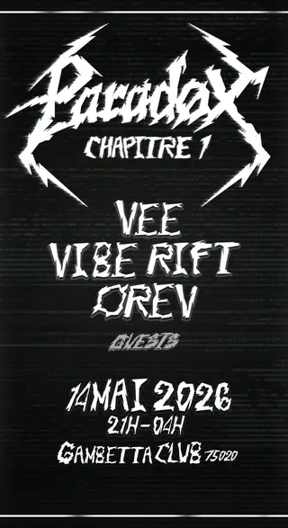 Paradøx Chapter 1 takes place at Le Gambetta Club in Paris, France on May 14, 2026. Techno and Gabber sounds all night.