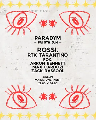 Paradym: Rossi, RTK Tarantino on June 5, 2026 at Ballin Maidstone, London features Rossi, RTK Tarantino and FOX. performing house DJ sets.