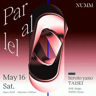 Parallel takes place at Numm in Tokyo, Japan on May 16, 2026. Featuring hiroto yano, 3rill, Keigo, Terax. House and Deep House sounds all night.