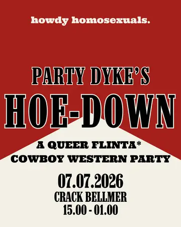Party Dyke's Hoe-Down: A Queer FLINTA* Cowboy Western Party takes place at Crack Bellmer in Berlin, Germany on Sunday, June 7, 2026.