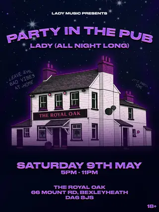 Party in the Pub on May 9, 2026 at Royal Oak, London features electronic music performances house DJ sets.