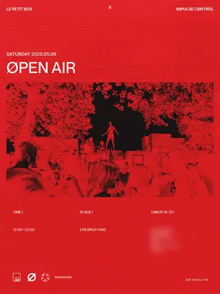 Set at TBA - Brooklyn Open Air, ØPEN AIR // IMPULSE CØNTROL x Le Petit Box 2026 brings together artists and fans in New York City on Saturday, May 9, 2026. This event brings together artists and fans who share a passion for dance music culture and Techno, Minimal Techno sounds. TBA - Brooklyn Open Air has hosted Techno events in New York City as part of the area's regular club programming. It draws fans seeking authentic Techno music in New York City. Designed for a discerning audience, TBA - Brooklyn Open Air's programming draws fans of Techno music across New York City. The production is designed to showcase the depth and diversity of contemporary electronic music.