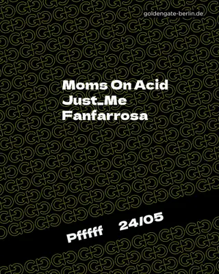 Pfffff takes place at Golden Gate in Berlin, Germany on May 24, 2026. Featuring Moms on Acid, Just_Me, Fanfarrosa.