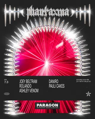 Phantasma: Joey Beltram, Rolando, Ashley Venom + Daniro, Pauli Cakes takes place at Paragon in New York City, United States on July 3, 2026. Featuring Joey Beltram, DJ Rolando, Ashley Venom, Daniro and 1 more. Techno and Acid sounds all night.