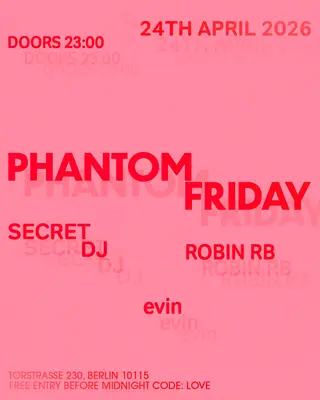 PHANTOM FRIDAY on April 24, 2026 at Phantom Bar Berlin, Berlin features evin and Robin RB performing house DJ sets.