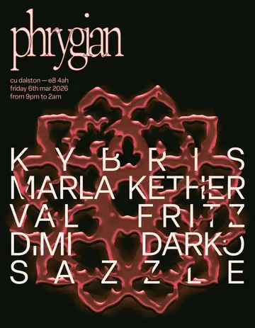 Phrygian 2.0 - Rhythms Without Borders takes place at Cu in London, United Kingdom on Friday, March 6, 2026. Featuring Dimi Darko, val fritz, Sazzle, Kybris and 1 more. Electronica.