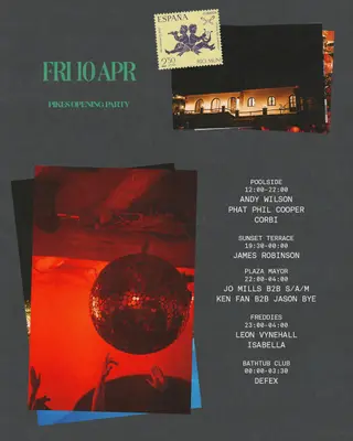 Pikes Opening takes place at Pikes Ibiza in Ibiza, Spain on April 10, 2026. Featuring Leon Vynehall, ISAbella, Defex, Jo Mills and 5 more. House and Disco sounds all night.