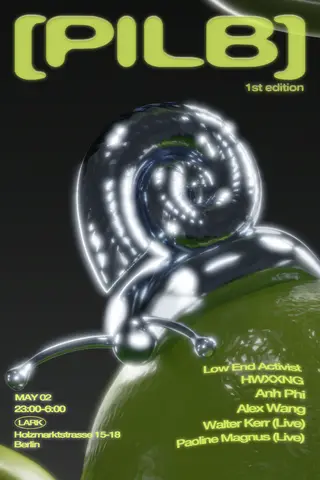 [PILB] - 1st Edition - with Low End Activist, HWXXNG, Anh Phi, ALEX WANG on May 2, 2026 at Lark, Berlin features Low End Activist, HWXXNG, Anh Phi and ALEX WANG performing bass DJ sets.