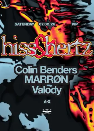 PIP x Hiss & Hertz / Colin Benders / MARRØN / Valody on February 7, 2026 at PIP Den Haag, The Hague features Colin Benders, MARRØN and Valody performing techno DJ sets.