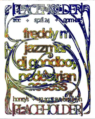 [PLACEHOLDER] takes place at Honey's in New York City, United States on April 24, 2026. Featuring Freddy M, Pedestrian Access, dj goodboy (BK). Breakbeat and House sounds all night.