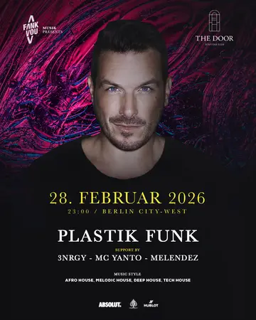 Plastik Funk live in berlin takes place at The Door Club in Berlin, Germany on Saturday, February 28, 2026. House, Afro House.