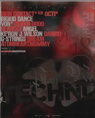 PLAY ME TECHNO on April 18, 2026 at TBA - Brooklyn, New York City features SKIN CONTACT, Daniro, Sevyn 0000, BEARCAT and Atomheartmommy performing techno DJ sets.