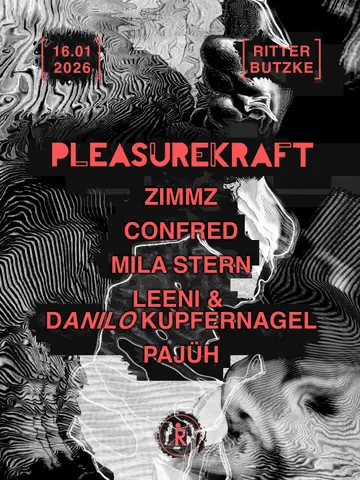 Tickets: https://club.ritterbutzke.com/event/160126-Pleasurekraft Leider kann PLEASUREKRAFT aus persönlichen Gründen nicht an dem Event teilnehmen. Die Tickets behalten weiterhin ihre Gültigkeit. Unfortunately, PLEASUREKRAFT will not be able to attend the event due to personal reasons. The tickets will remain valid.