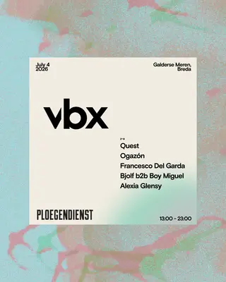 Ploegendienst Festival - 04.07 - Breda, NL takes place at Galderse Meren on July 4, 2026. Featuring Quest (IT), Ogazón, Francesco Del Garda, Alexia Glensy.